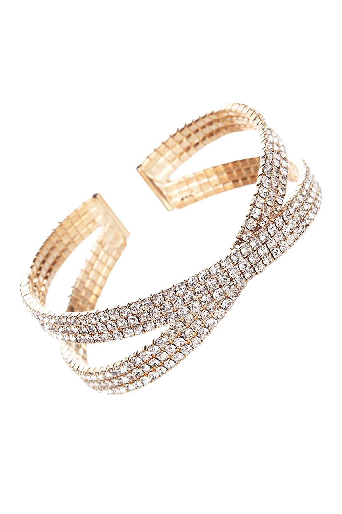 Criss cross adjustable wire bracelet covered in rhinestones